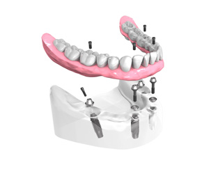 Appareil résine complet fixé sur 4 implants dentaires, appelé aussi All-on-4.
